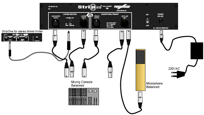 The StripOne features two balanced (TRS, +4dBu)outputs on XLR jack